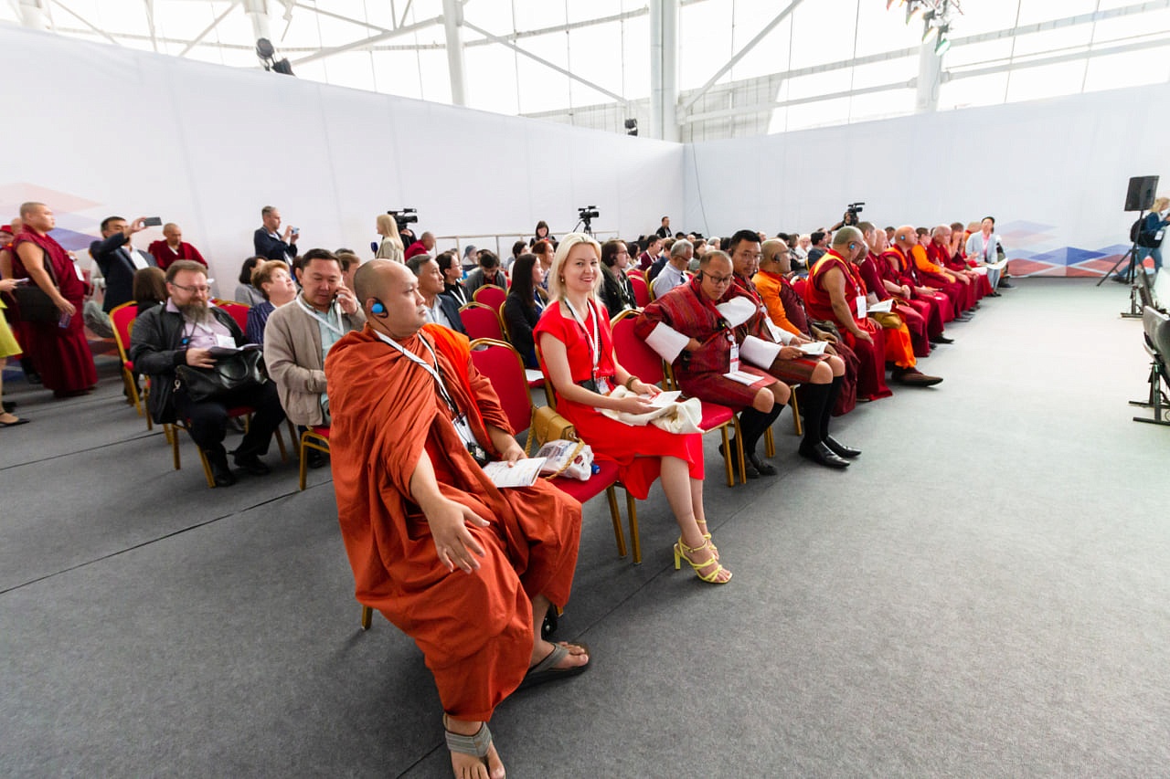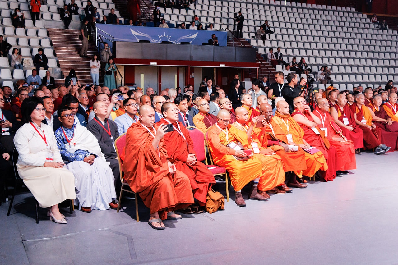 Масштабное мероприятие началось с мантры Трех драгоценностей, которую прочитали ламы из разных стран, в том числе Буддийской традиционной Сангхи России.