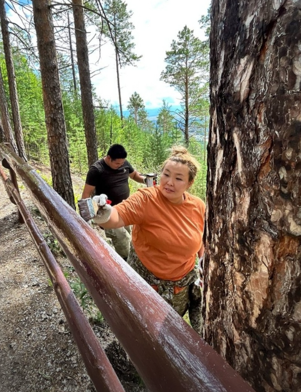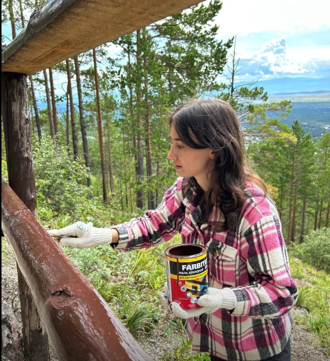 «Чтобы покрасить ограждения на экологической тропе «Пик Любви», мы поднимались до уровня третьей смотровой площадки, откуда открывается захватывающий вид на Тункинскую долину с потухшими вулканами и цепочкой Койморских озер. Любая работа приносит радость, если на фоне наблюдать эту волшебную панораму! Время пролетело незаметно, было весело и интересно работать с дружной командой сотрудников национального парка. Усталость была приятной от осознания того, что мы делаем что-то полезное для обустройства парка. Я понимаю, что это именно те эмоции, за которыми я сюда приехала», - поделилась Диана Скворцова.