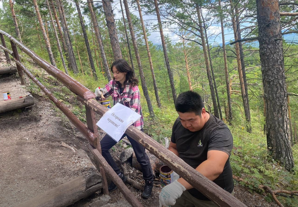 В Тункинском районе Бурятии сотрудники национального парка продолжают благоустройство экологической тропы «Пик Любви», что находится в курортном поселке Аршан. Помогают им в этом деле добровольцы.