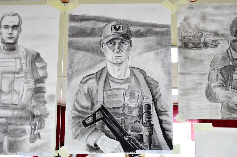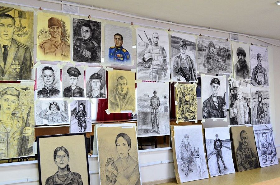 В небольшом зале одного из корпусов Республиканского колледжа искусств имени П.И. Чайковского развешаны портреты участников специальной военной операции, написанные учащимися и преподавателями общеобразовательных школ, средних профессиональных и высших учебных заведений, детских школ искусств, приняли участие также профессионалы и независимые авторы.