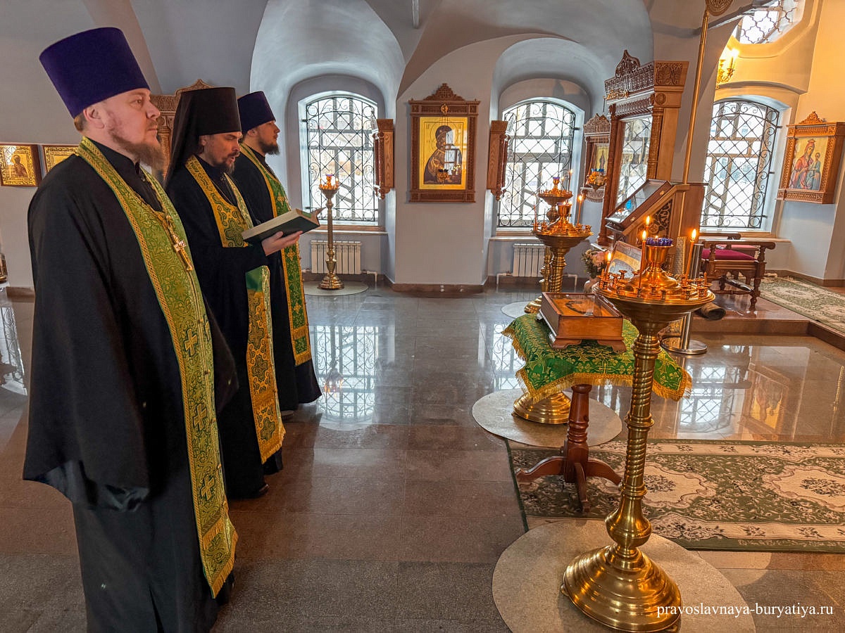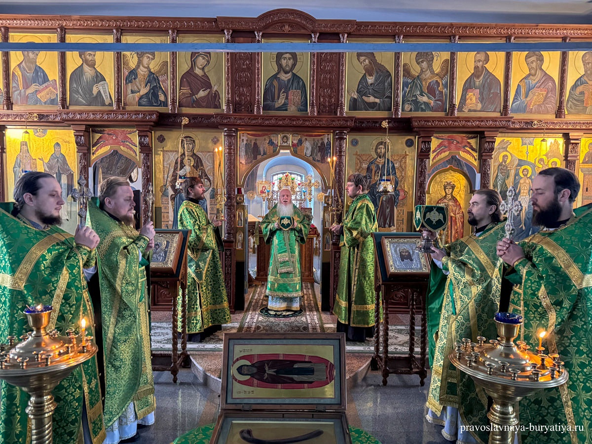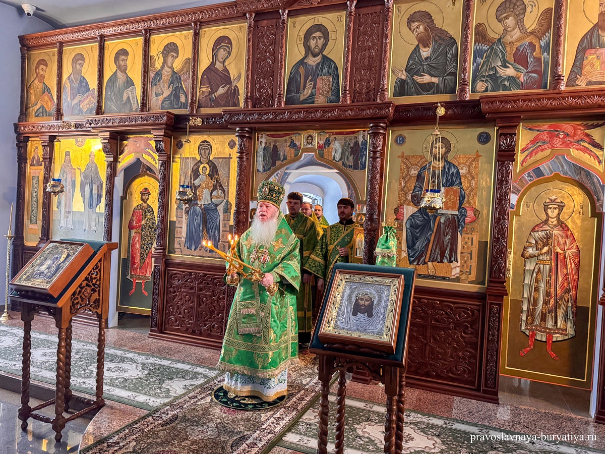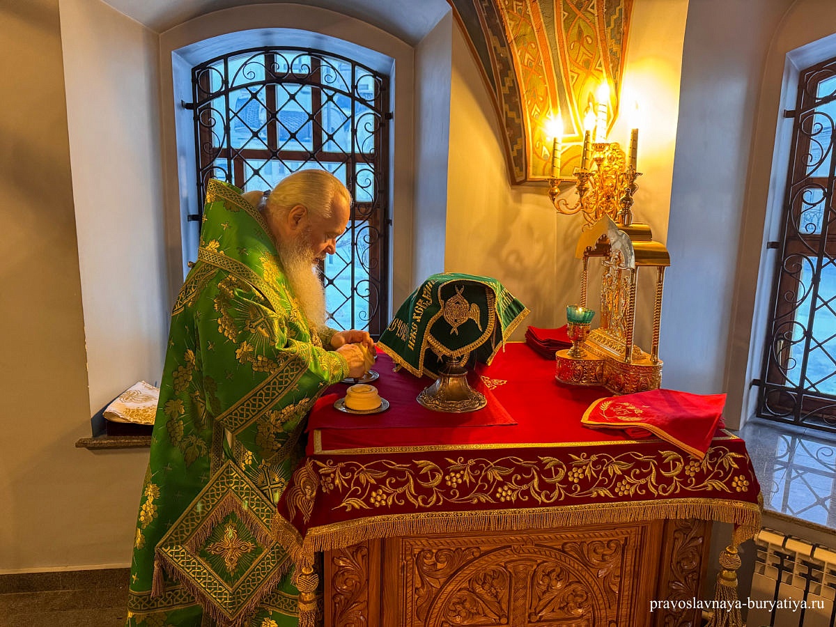 В канун праздника в Одигитриевском соборе города Улан-Удэ митрополит Улан-Удэнский и Бурятский Иосиф возглавил вечернее полиелейное богослужение. За богослужением Владыка помазал прихожан освященным елеем.