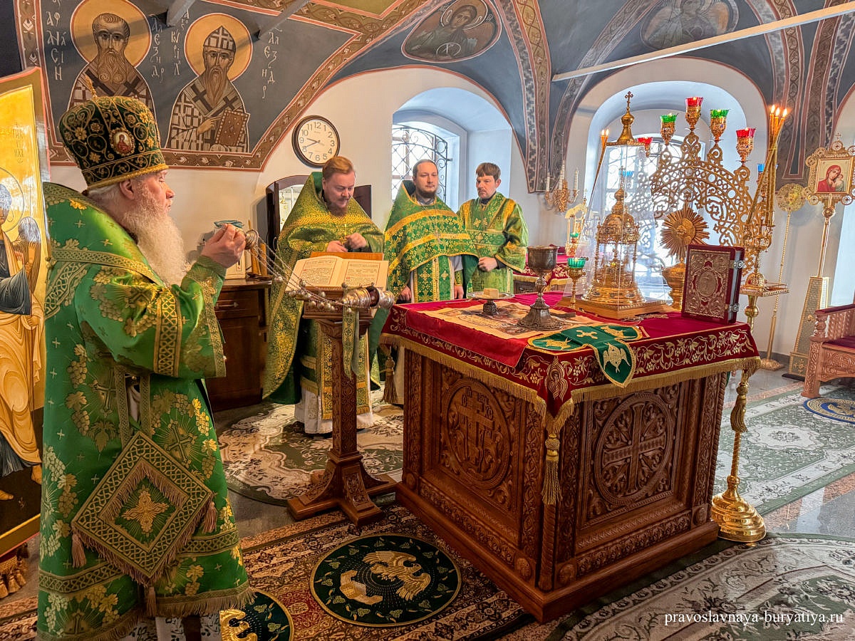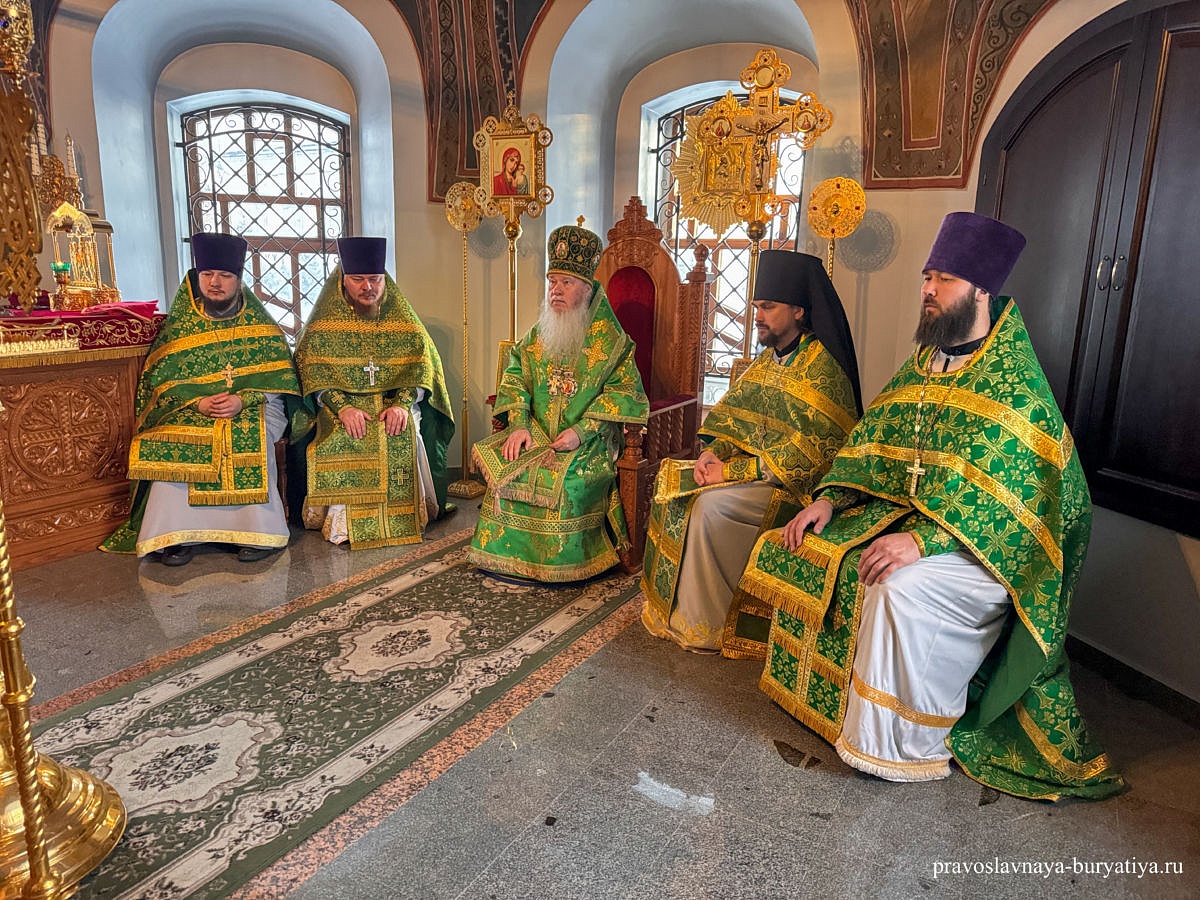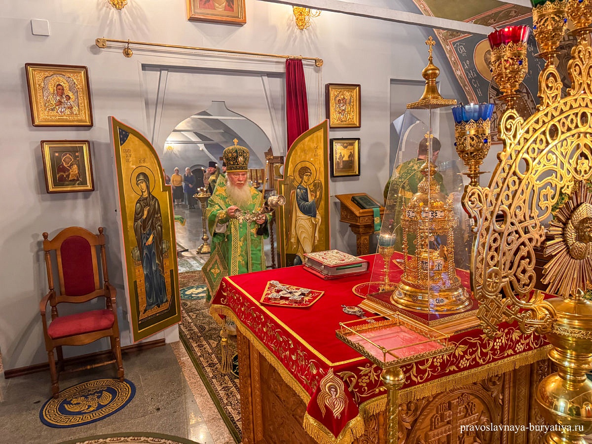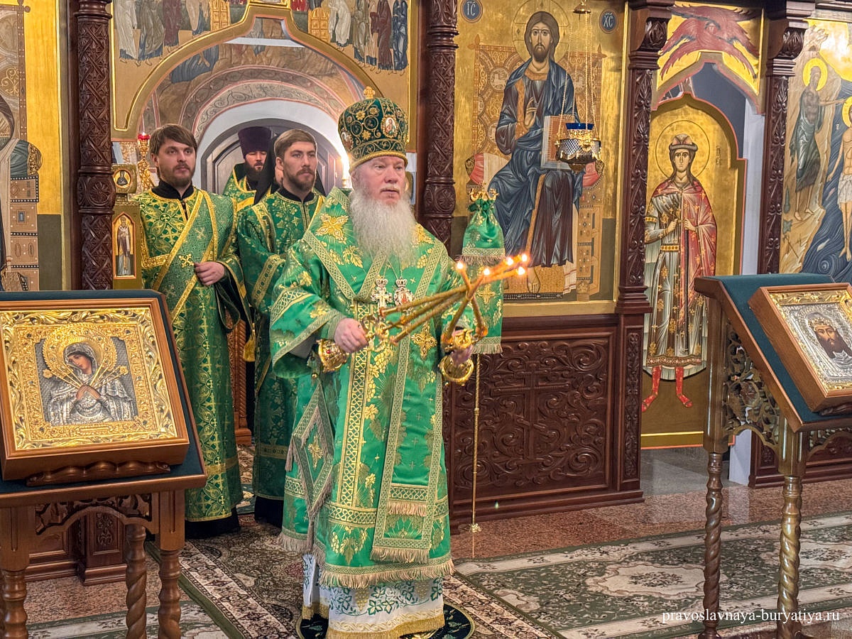 В канун праздника в Одигитриевском соборе города Улан-Удэ митрополит Улан-Удэнский и Бурятский Иосиф возглавил вечернее полиелейное богослужение. За богослужением Владыка помазал прихожан освященным елеем.