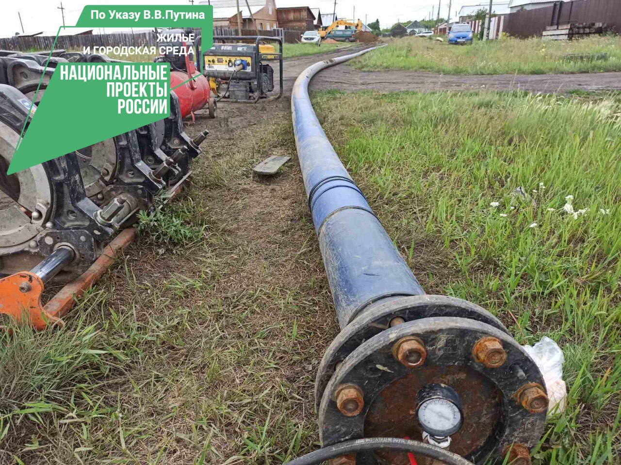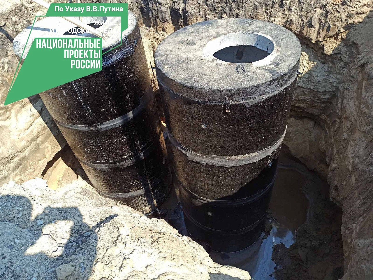 На сегодня, по сведениям заказчика, выполнены: разработка грунта в траншеи с водоотливом и укреплением стенок траншеи, обратная засыпка с уплотнением, укладка трубопроводов, разработка стартового и приемного котлована, устройство закрытого подземного перехода для труб. Продолжается подготовка территории строительства, монтаж сетей водоснабжения, устройство колодцев и пожарных гидрантов, благоустройство территории, установка ограждения и ворот с калиткой.