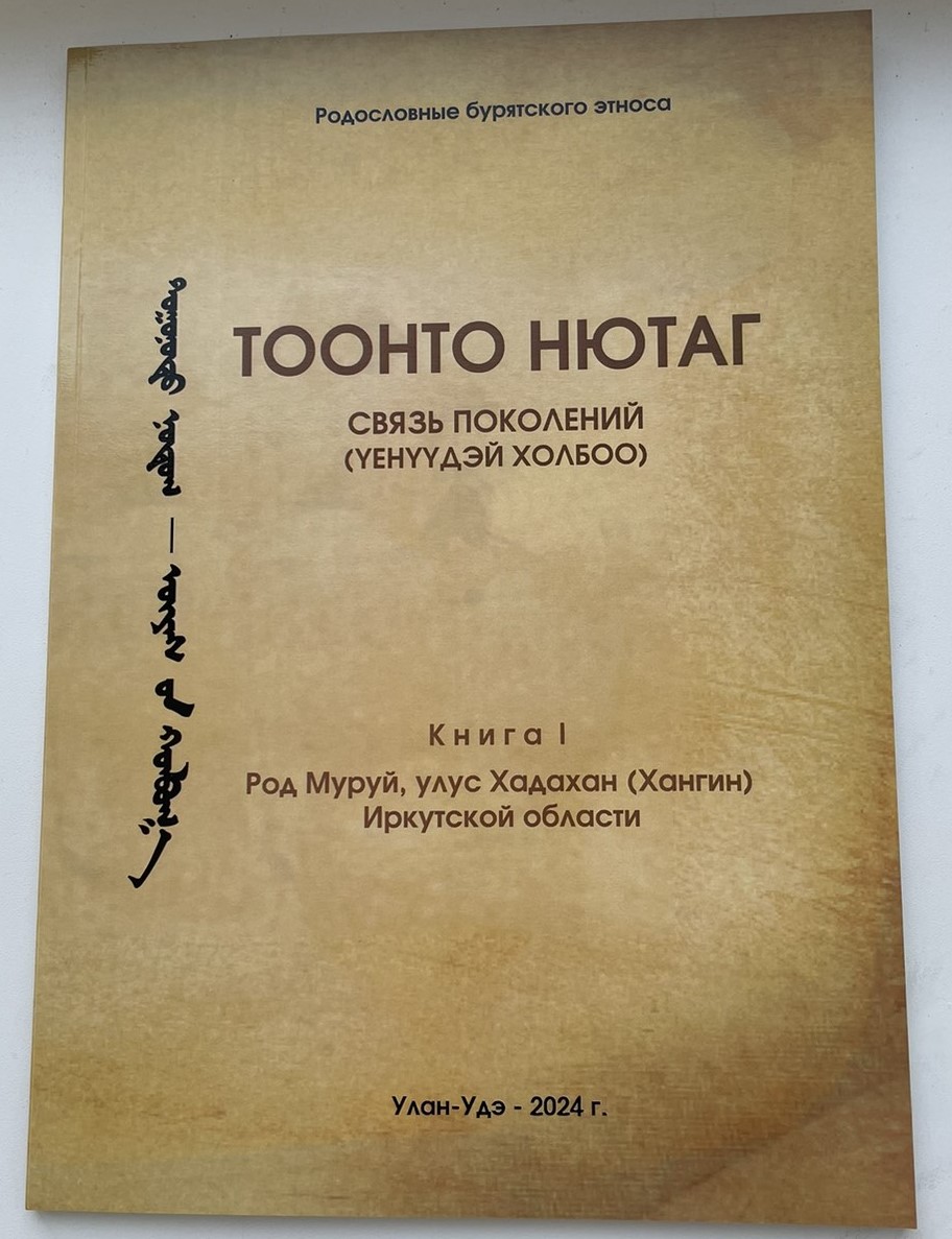 13 декабря в Национальной библиотеке Бурятии пройдет презентация первой книги проекта «Тоонто нютаг – связь поколений». Издание подготовлено по материалам Инны Александровны Петровой (Гудуевой) и посвящено роду Муруй улуса Хадахан (Хангин) Иркутской области.