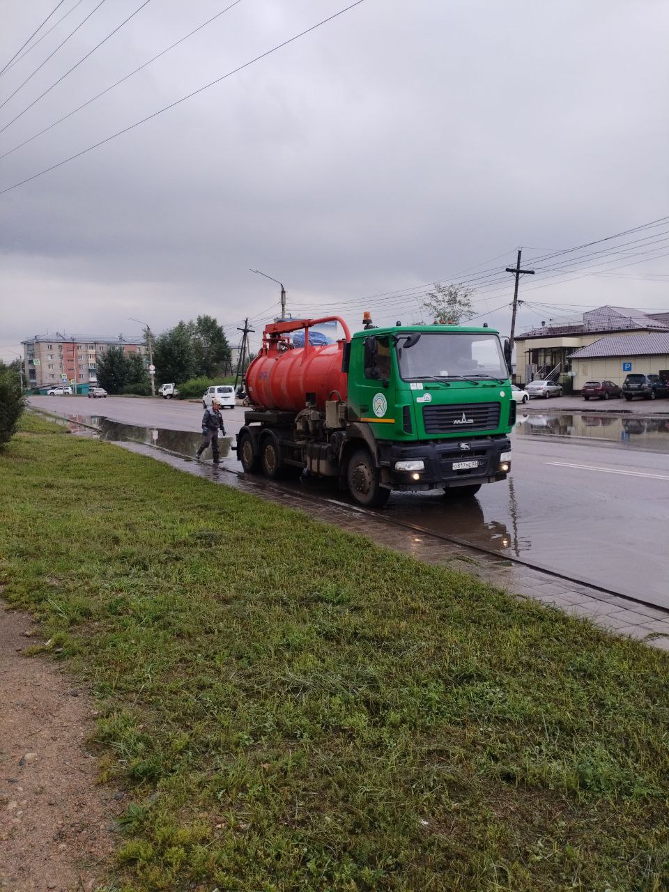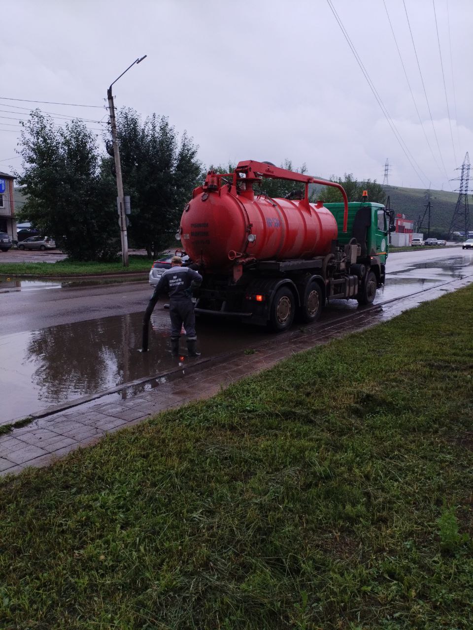 В Советском районе Улан-Удэ полным ходом идут работы по откачке луж. Сотрудники районной администрации, Комбината по благоустройству следят за скоплениями воды и патрулируют улицы.