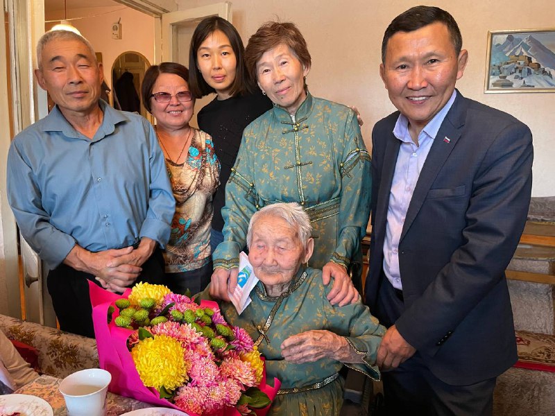 Глава Селенгинского района Бурятии Станислав Гармаев поздравил в День учителя ветерана образования, 100-летнюю Дулму Батуевну Улымжиеву. Также поздравить ее приехал директор школы и ветераны-педагоги ее родной школы. Уважаемому наставнику и педагогу передали подарок от главы Бурятии и пожелания крепкого здоровья и благополучия, сообщает министерство образования и науки республики.