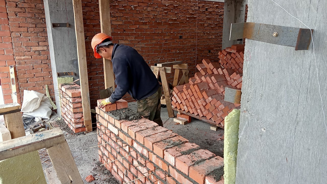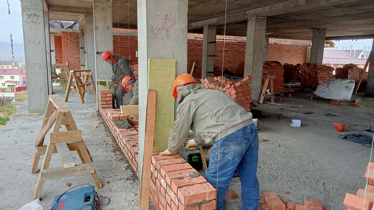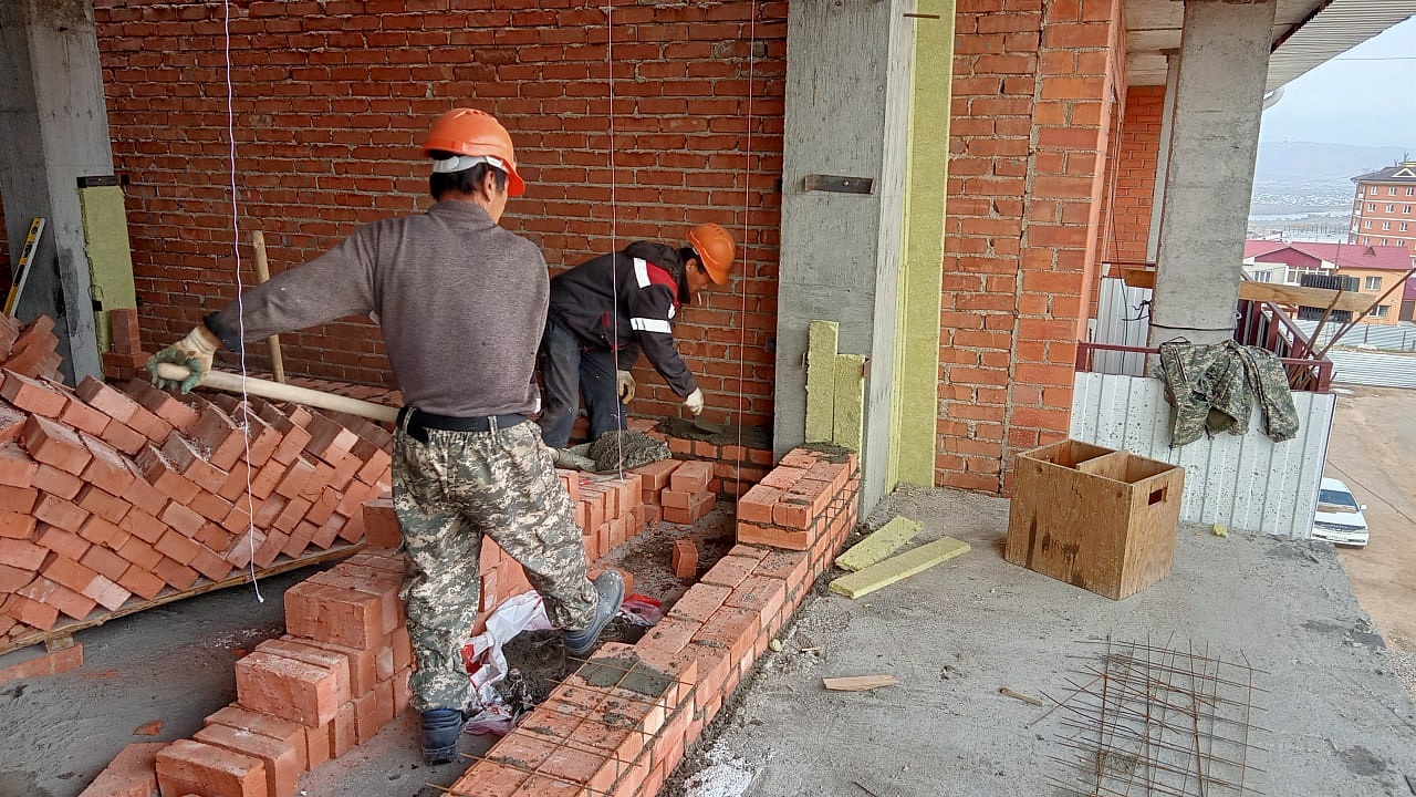 – На данный момент выполняется кладка третьего этажа, – рассказал прораб ООО «Бархан» Анатолий Будаев. – Выполнены кладка первого и второго этажей, черновая отделка первого этажа. Приступили к шпаклёвке мест общего пользования. На втором этаже продолжаются штукатурные работы. В ближайшее время планируем приступить к сантехническим и вентиляционным работам.