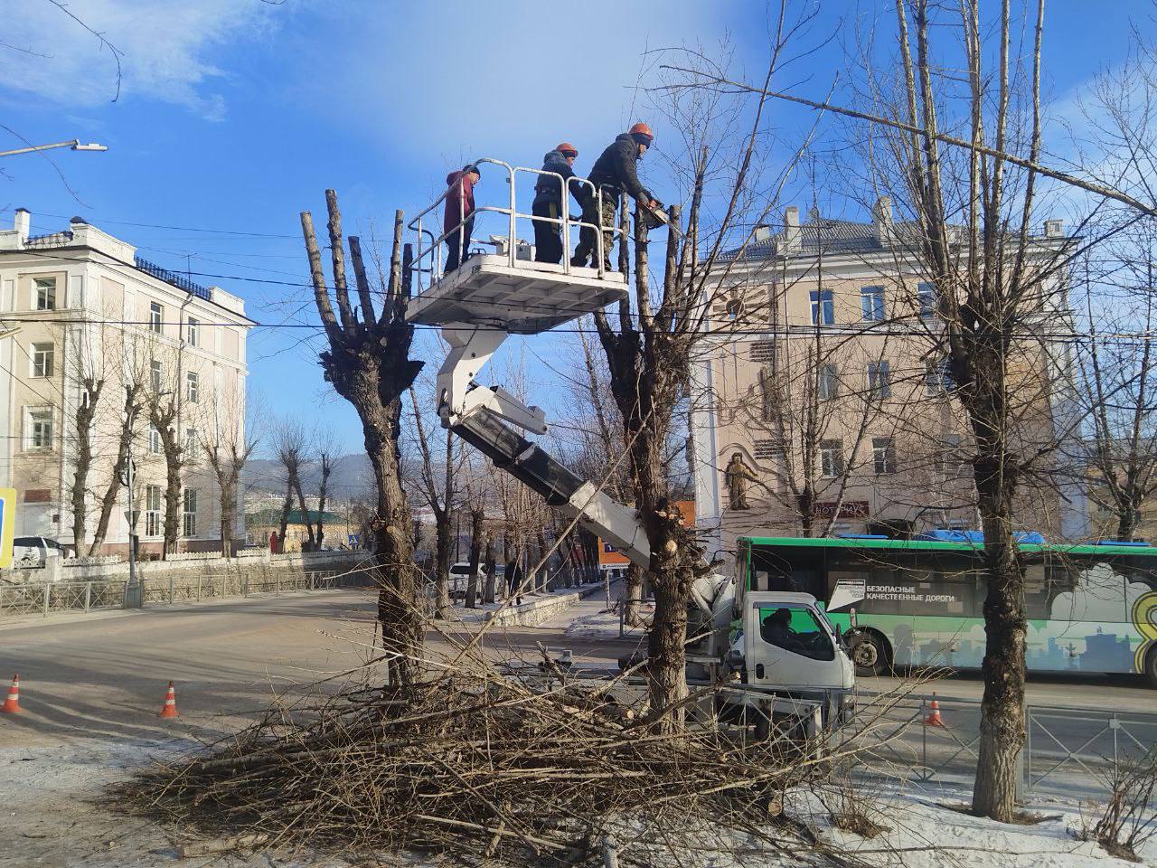 На дворе зима, а в столице Бурятии продолжается подготовка деревьев к весне. Одно из направлений этой подготовки – омолаживающая подрезка деревьев. Формовка и омолаживание крон у «зеленых легких» нашего города дает активный рост побегов и увеличивает продолжительность жизни растения.