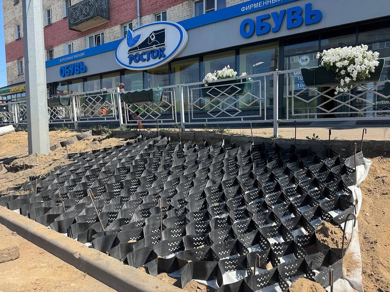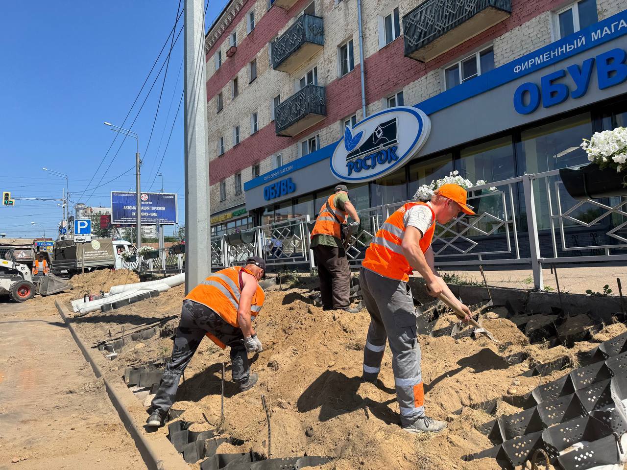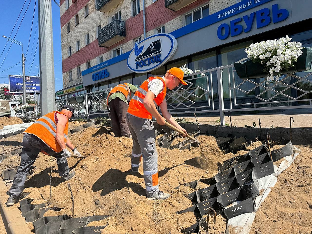 «Друзья, мы приступили к обновлению улицы Ербанова. Сейчас специалисты Комбината по благоустройству делают прочное основание: сначала они уложат слой геотекстиля, затем закрепят георешетку».