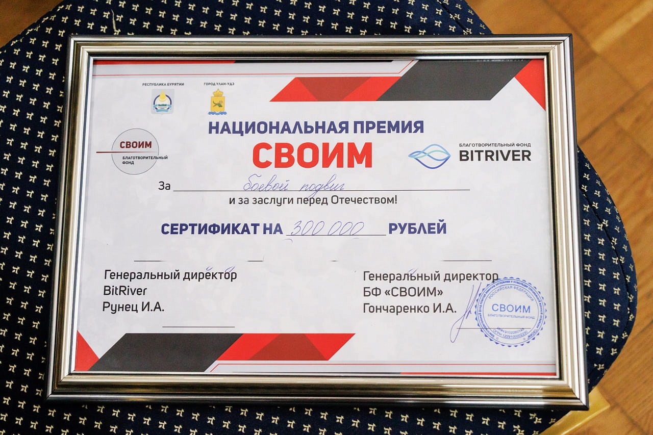 Отметим, идея премии «СВОИМ» появилась как ответ общества на слова Президента РФ Владимира Путина о значимости участия российского бизнеса и гражданского общества в поддержке наших воинов и проводится при поддержке главы Бурятии Алексея Цыденова.