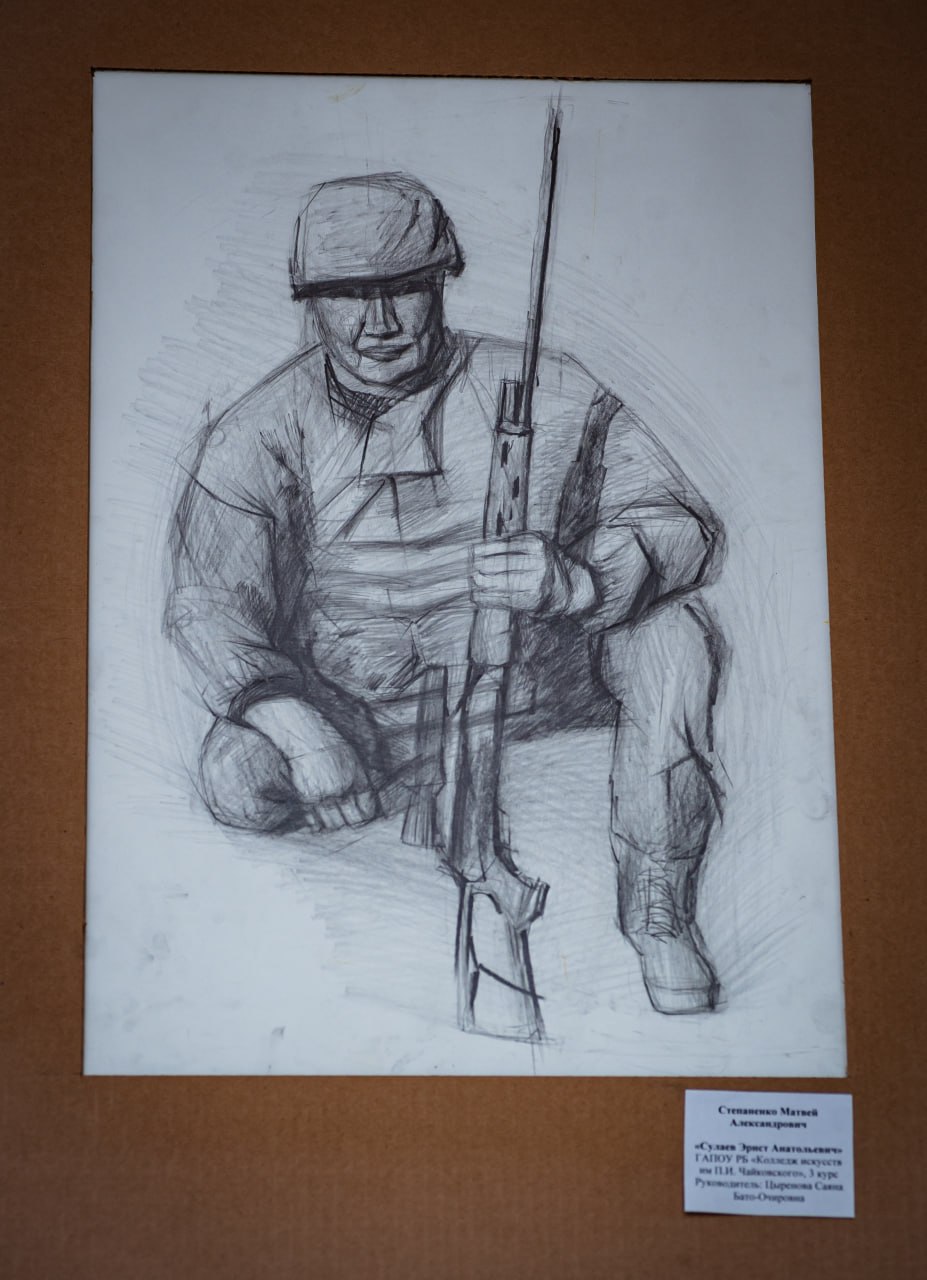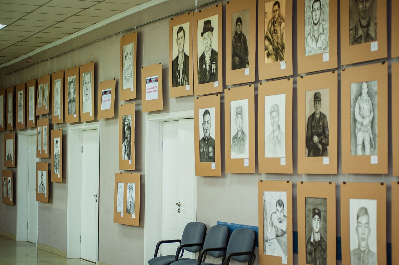 Вторая выставка, расположенная фойе колледжа искусств отличается масштабом и тем, что на портретах изображены не только герои СВО, но и Великой Отечественной войны. Посетить экспозицию можно будет в течение месяца, до 28 июня. Вход свободный.