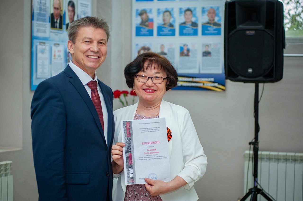 Вручили награды победителям: заместитель министра культуры Бурятии Владимир Кожевников, Ольга Лоцман, управляющий директор сети магазинов «Полином» Баир Бадлуев и Евгений Болсобоев.