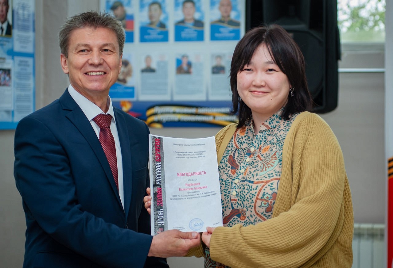 В фойе главного корпуса Колледжа искусств им. П.И. Чайковского состоялось открытие выставки и награждение победителей II Республиканского конкурса творческих работ «Уголь земли русской. Бурятия», посвященного 80-летию Победы в Великой Отечественной войне и Году Защитника Отечества.