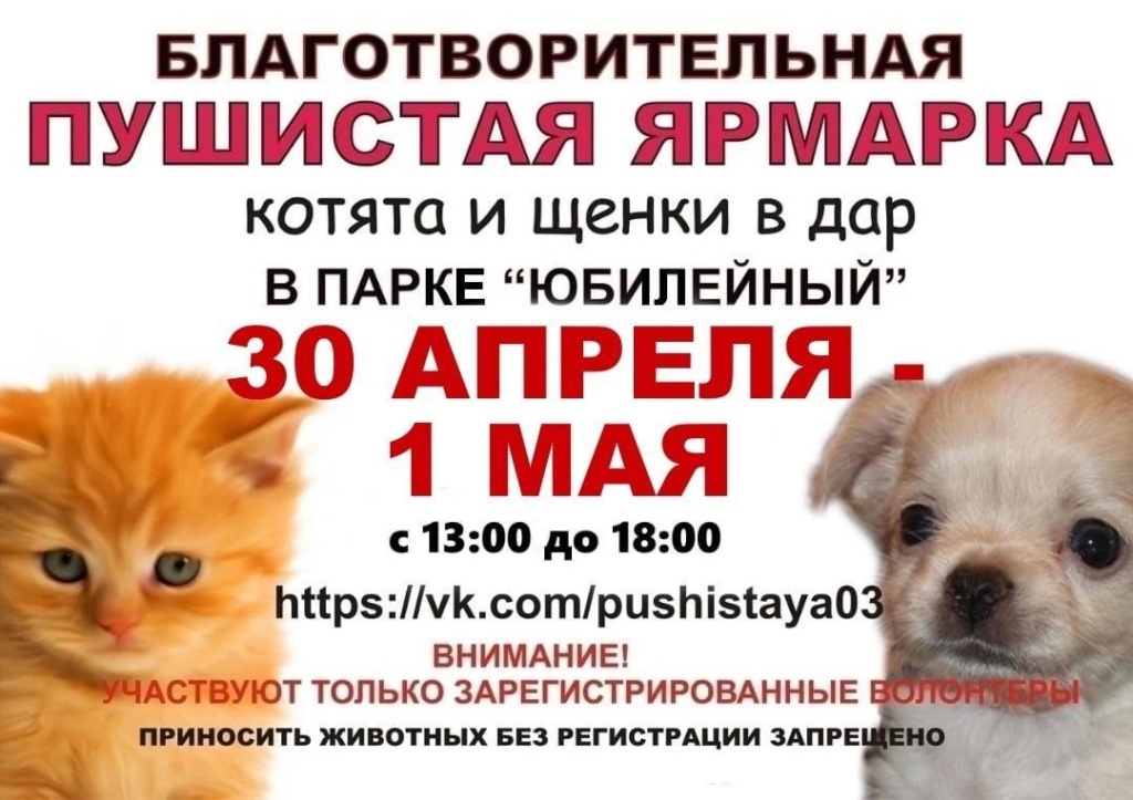 В Улан-Удэнском парке «Юбилейный» 30 апреля и 1 мая пройдет «Пушистая ярмарка».