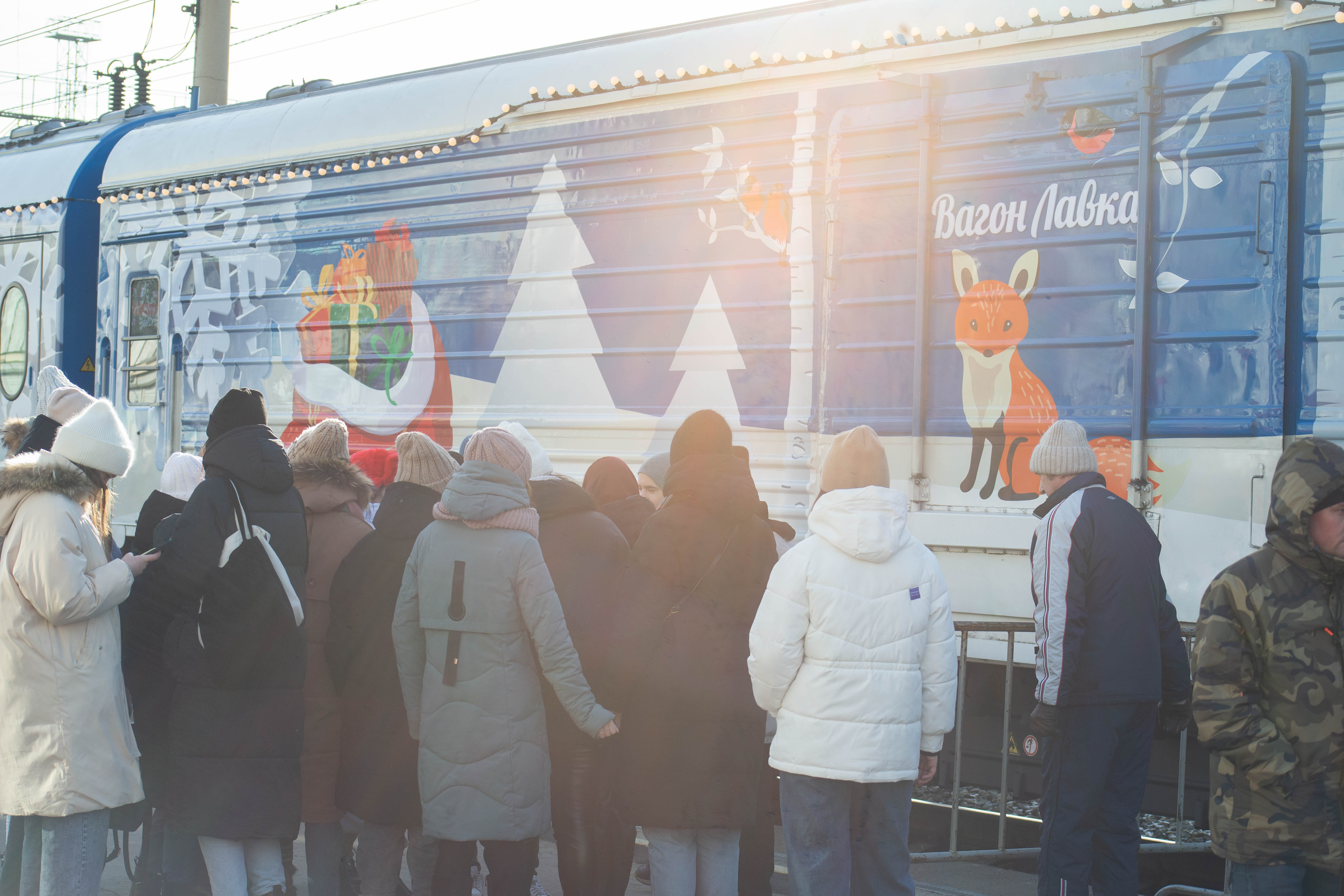 Не только праздничный концерт радует горожан, но и вагоны свободного посещения. В 10-ом вагон-лавке можно приобрести разную сувенирную продукцию. В 11-ом вагоне - фотозона, а в 12-ом - вагон-ресторан. Для тех, кто успел приобрести билеты, проход отдельно организован в 6-ой вагон (не забудьте на детей свидетельство о рождении и сам билет можно показать в телефоне).