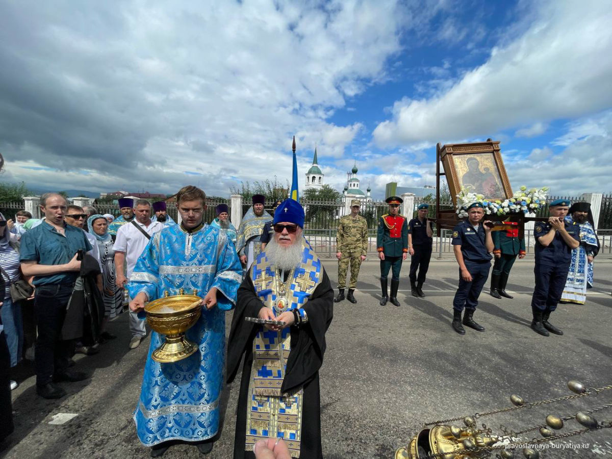 Вчера, 10 августа, в столице Бурятии состоялось благоговейное молитвенное шествие с чтимой старинной иконой Царицы Небесной, именуемой «Одигитрия».