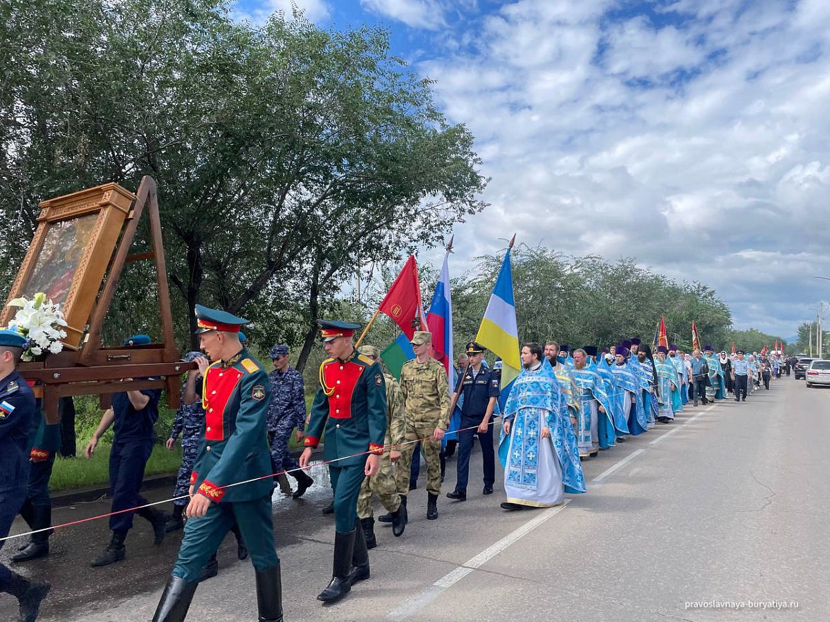 В Крестном ходе приняли участие митрополит Улан-Удэнский и Бурятский Иосиф, священнослужители Улан-Удэнской и Бурятской епархии, наместник Свято-Троицкого Селенгинского мужского монастыря игумен Алексий (Ермолаев) с братией обители, братия Спасо-Преображенского Посольского мужского монастыря, а также военнослужащие воинских частей республики, члены епархиальных молодежных клубов, прихожане из разных приходов Бурятской митрополии и паломники, приехавшие из дальних районов и близлежащих регионов.