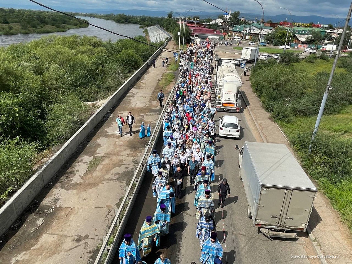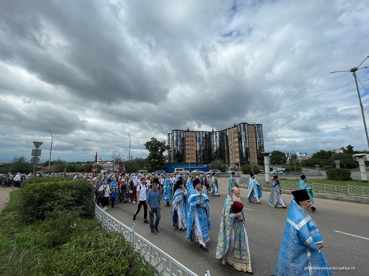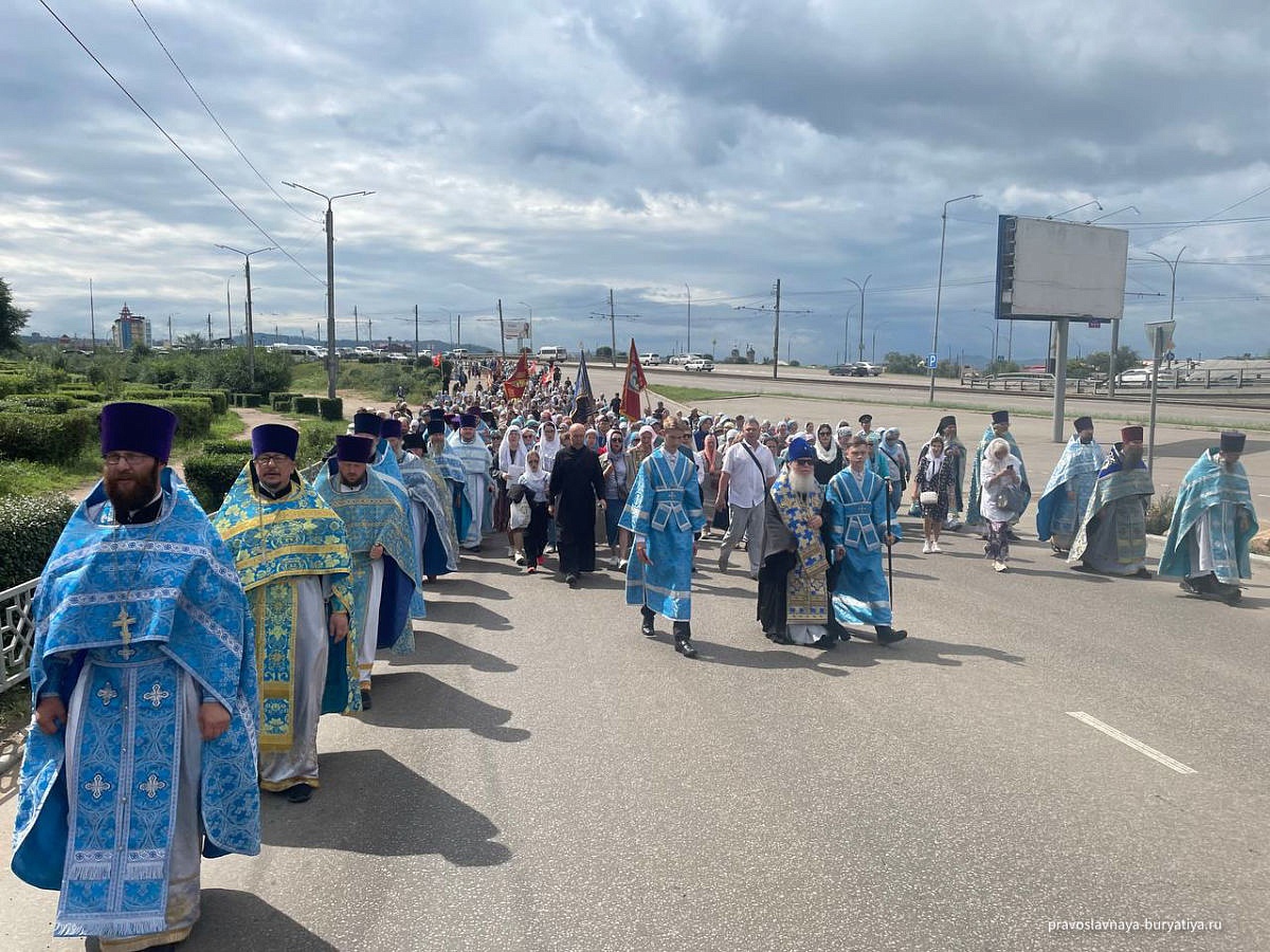 Крестное шествие прошло по центральным улицам города. Началось оно от Свято-Одигитриевского собора, прошло по улицам Набережной, Куйбышева, Борсоева, проспекту Октября и завершилось в строящемся кафедральном Успенском соборе г. Улан-Удэ.