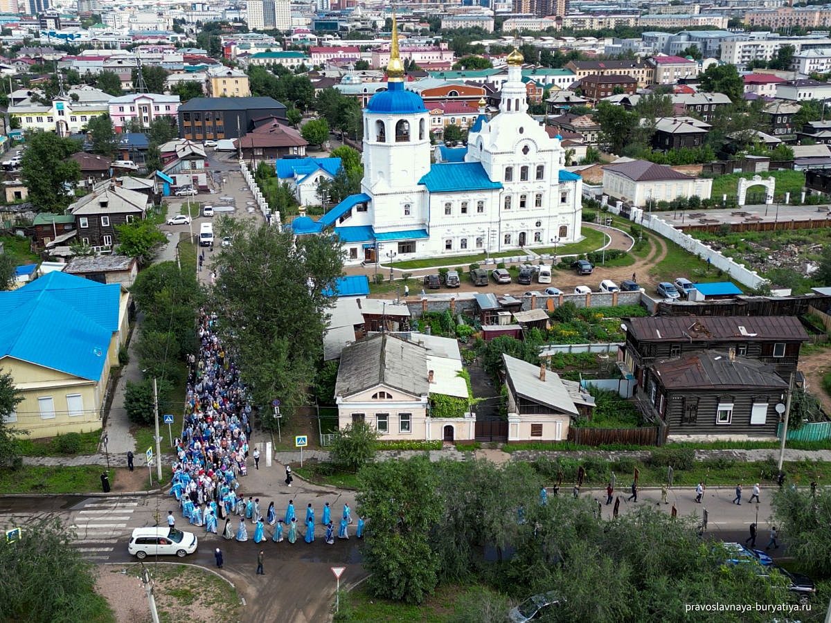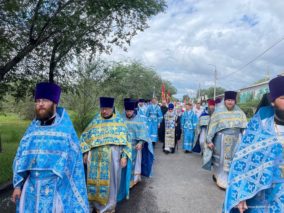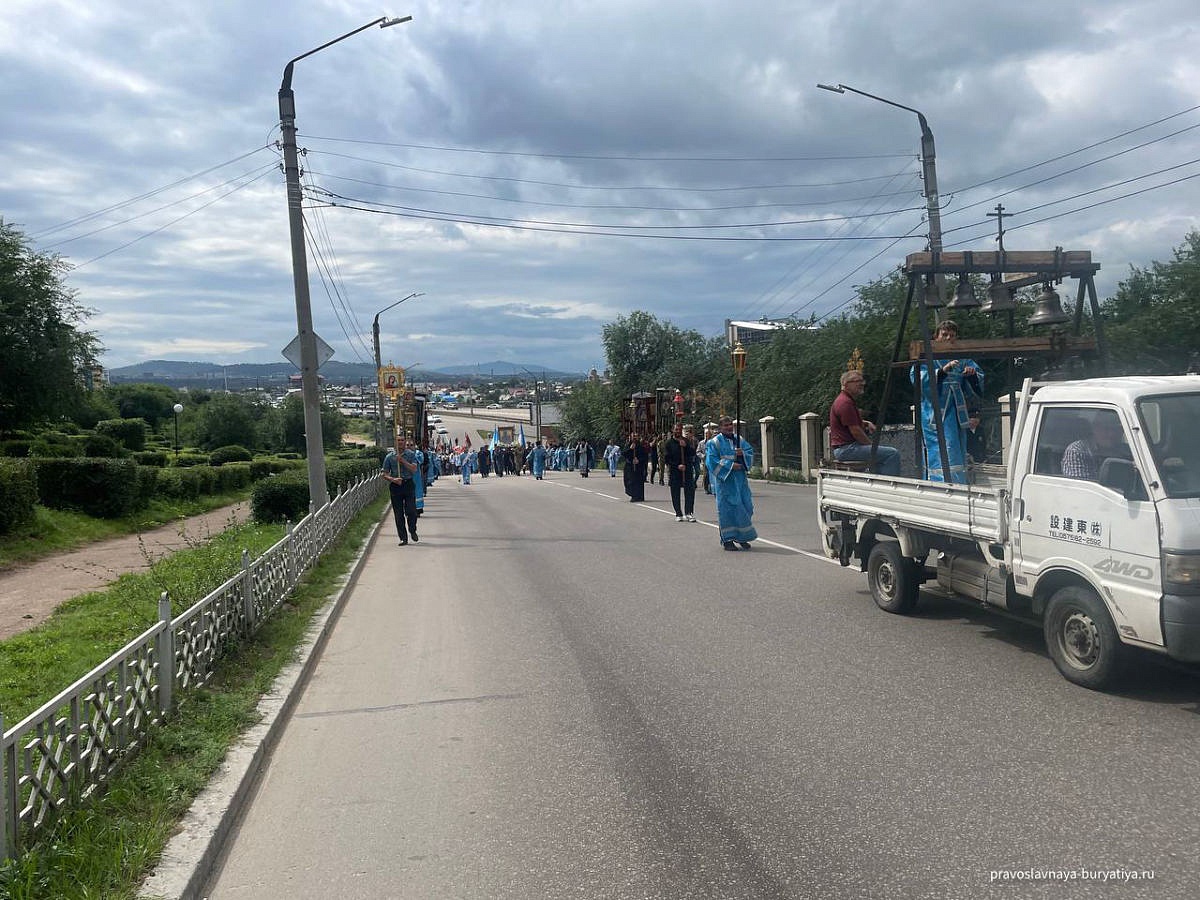 Крестное шествие прошло по центральным улицам города. Началось оно от Свято-Одигитриевского собора, прошло по улицам Набережной, Куйбышева, Борсоева, проспекту Октября и завершилось в строящемся кафедральном Успенском соборе г. Улан-Удэ.
