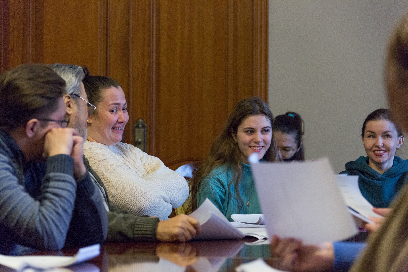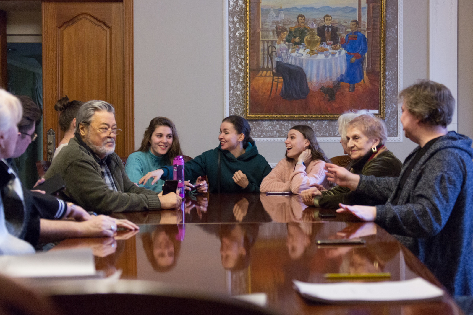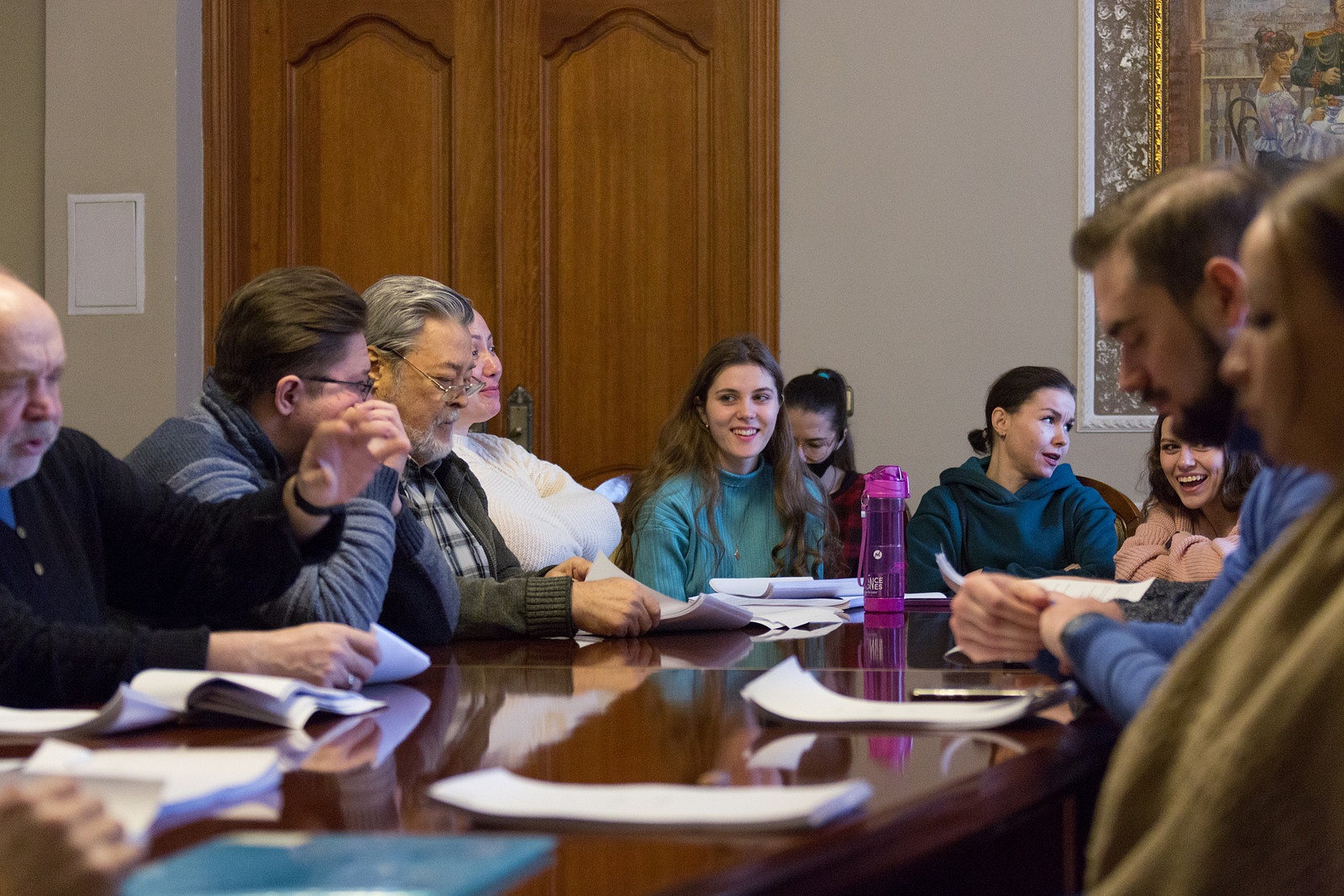 - Надеюсь, у нас получится яркий, веселый и громкий спектакль, - обратился Дмитрий Юмашев к бестужевцам. - Я родом из театральной семьи – моя мама актриса, ей уже 80 лет, но она до сих пор играет в театре. Что такое театральная жизнь я знаю детства, люблю артистов, поэтому надеюсь, что вам будет легко.