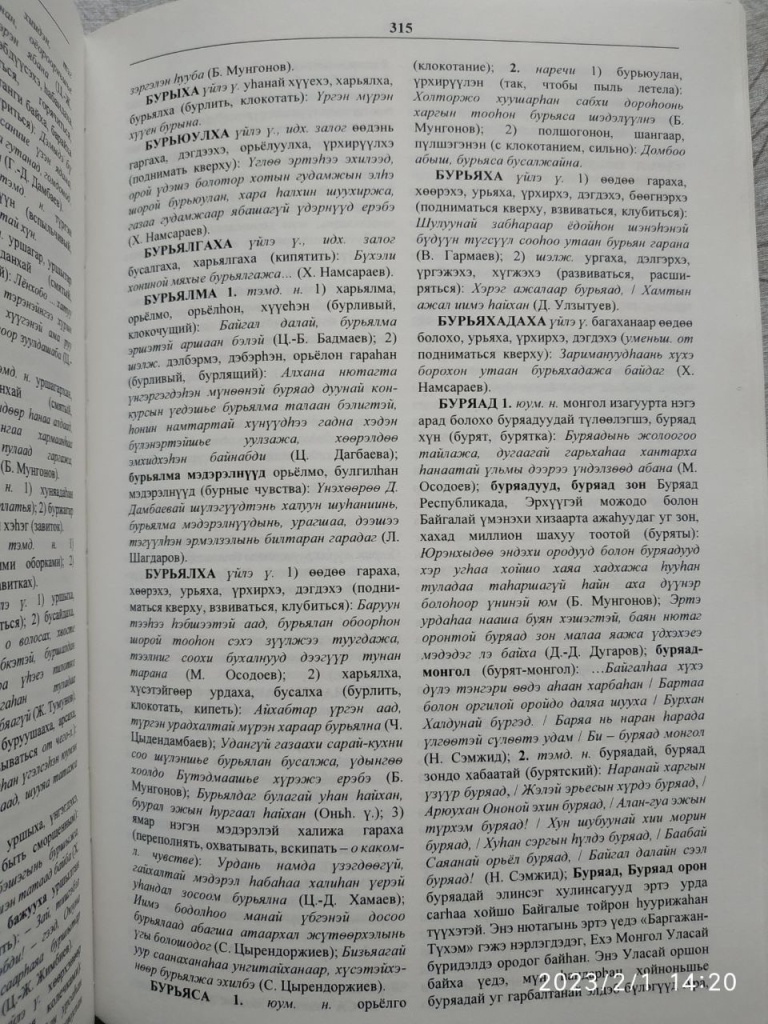 К 100-летию Института монголоведения, буддологии и тибетологии СО РАН был издан первый том «Толкового словаря бурятского языка». Работа над ним продолжалась около 60 лет. К слову, первый том напечатали не в Бурятии, а в Монголии. Сейчас составители думают над тем, как издать еще оставшихся три тома.