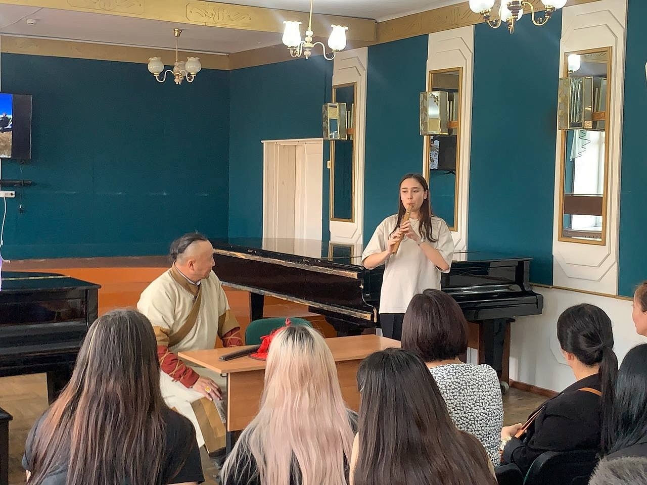 Студенты и педагоги узнали о том, как знаменитый сказитель из Монголии начинал свой творческий путь, который привел его к вершине славы и признания не только у себя на родине, но в других странах.