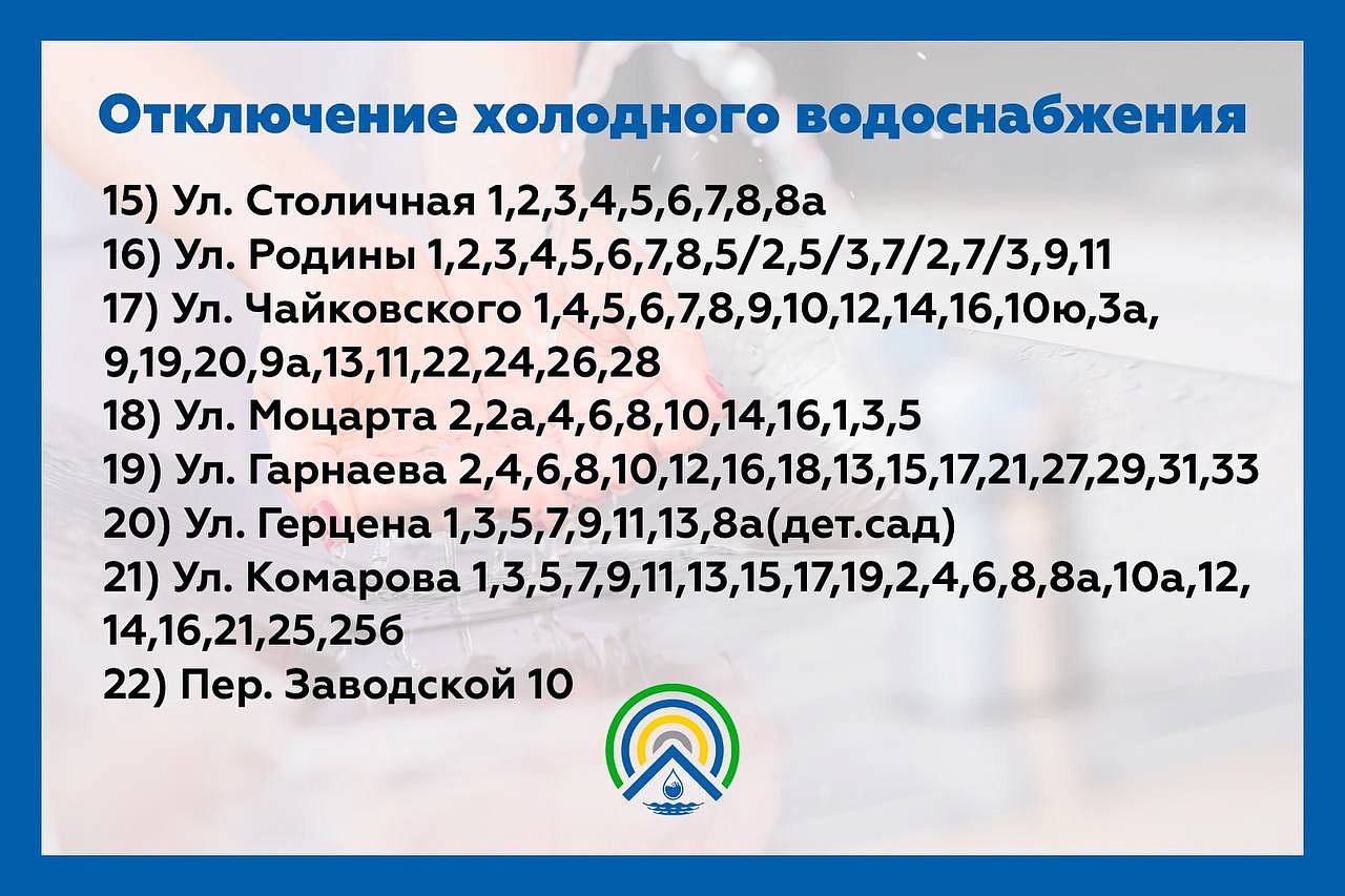 Для выполнения работ будут задействованы четыре аварийно-ремонтные бригады и семь единиц спецтехники. Ограничение подачи холодного водоснабжения будет производиться с 22:00 4 июля до 07:00 утра 5 июля.