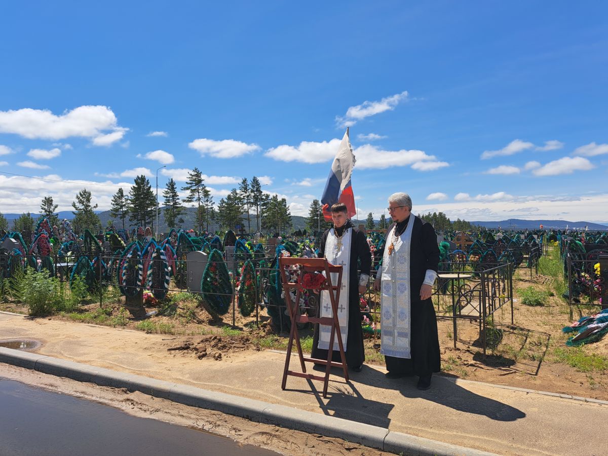 Священнослужители Улан-Удэнской и Бурятской епархии - иерей Олег Беломестных и иерей Павел Науменко, отслужили на кладбище возле могил воинов, погибших при исполнении воинского долга в зоне СВО, панихиду «по вождям и воинам, на поле брани жизнь свою за веру и Отечество положившим».